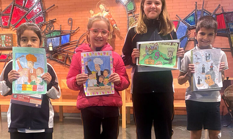 Como parte de las actividades, los alumnos de Ed. Primaria participaron en un concurso de dibujo y pintura inspirado en la vida y el testimonio del santo, reflejando con creatividad su fe y su entrega a los demás.